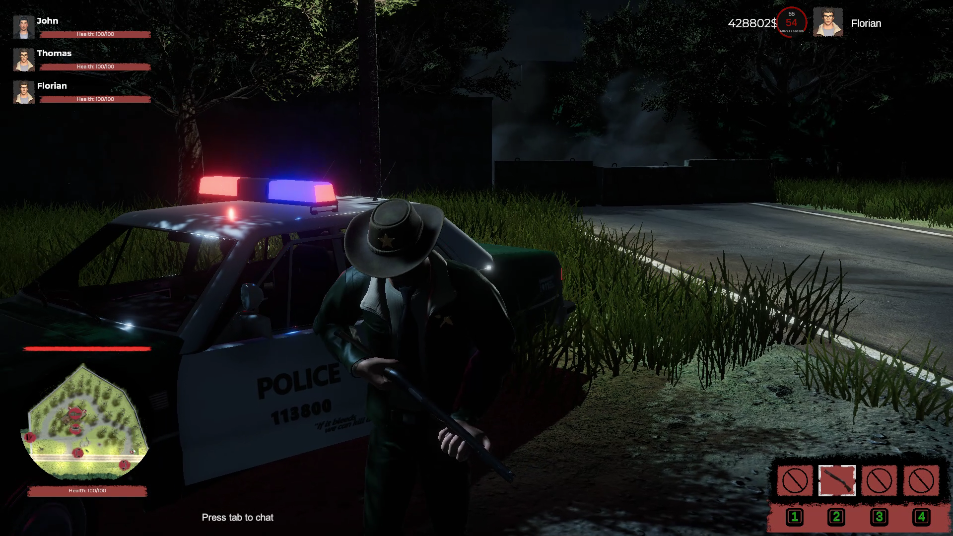 Rescue Mechanism: Even after a player is killed, hope remains. Survivors can revive a fallen comrade by using a hidden phone to summon the sheriff, who enters with a double-barrel shotgun, providing a brief upper hand over the killer.